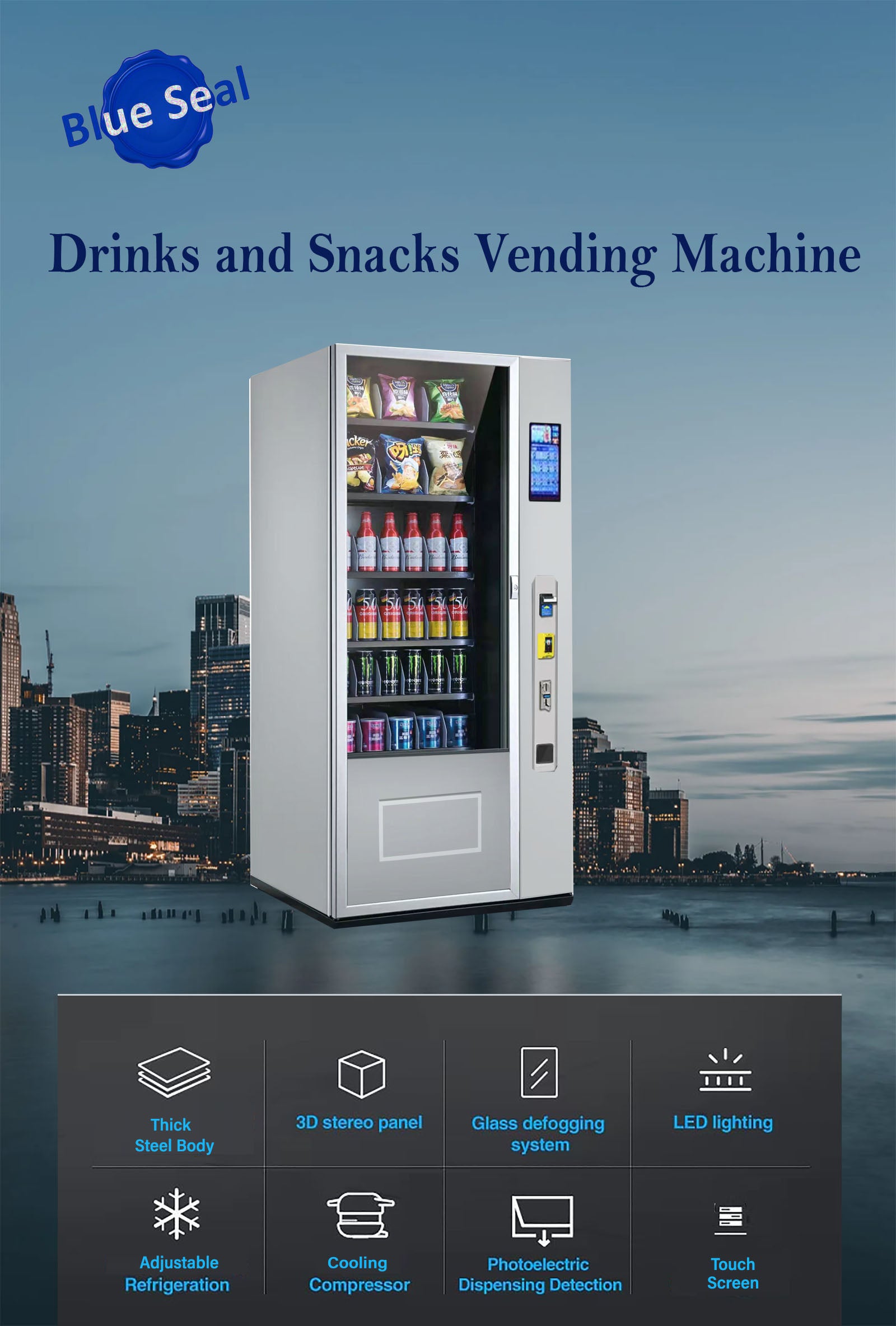 BLUE-1003C-SL-TNH is a high-performance Combo vending machine with 7" inch touch-screen, this quality modern machine provides an intuitive self-service experience, ideal solution for shopping malls, gyms, schools, and high-traffic and office warehouse areas.