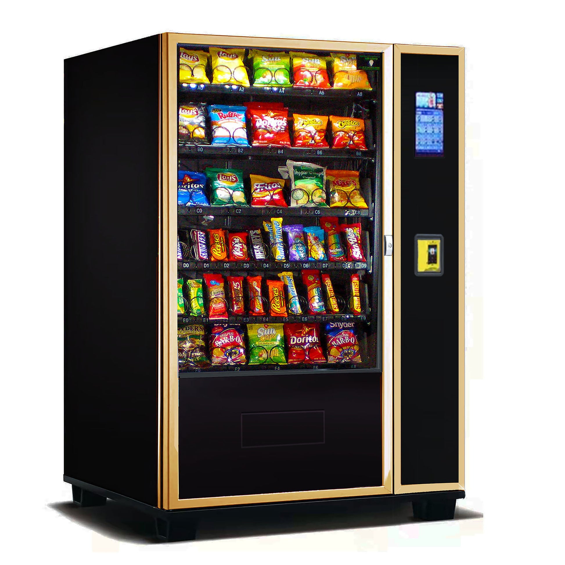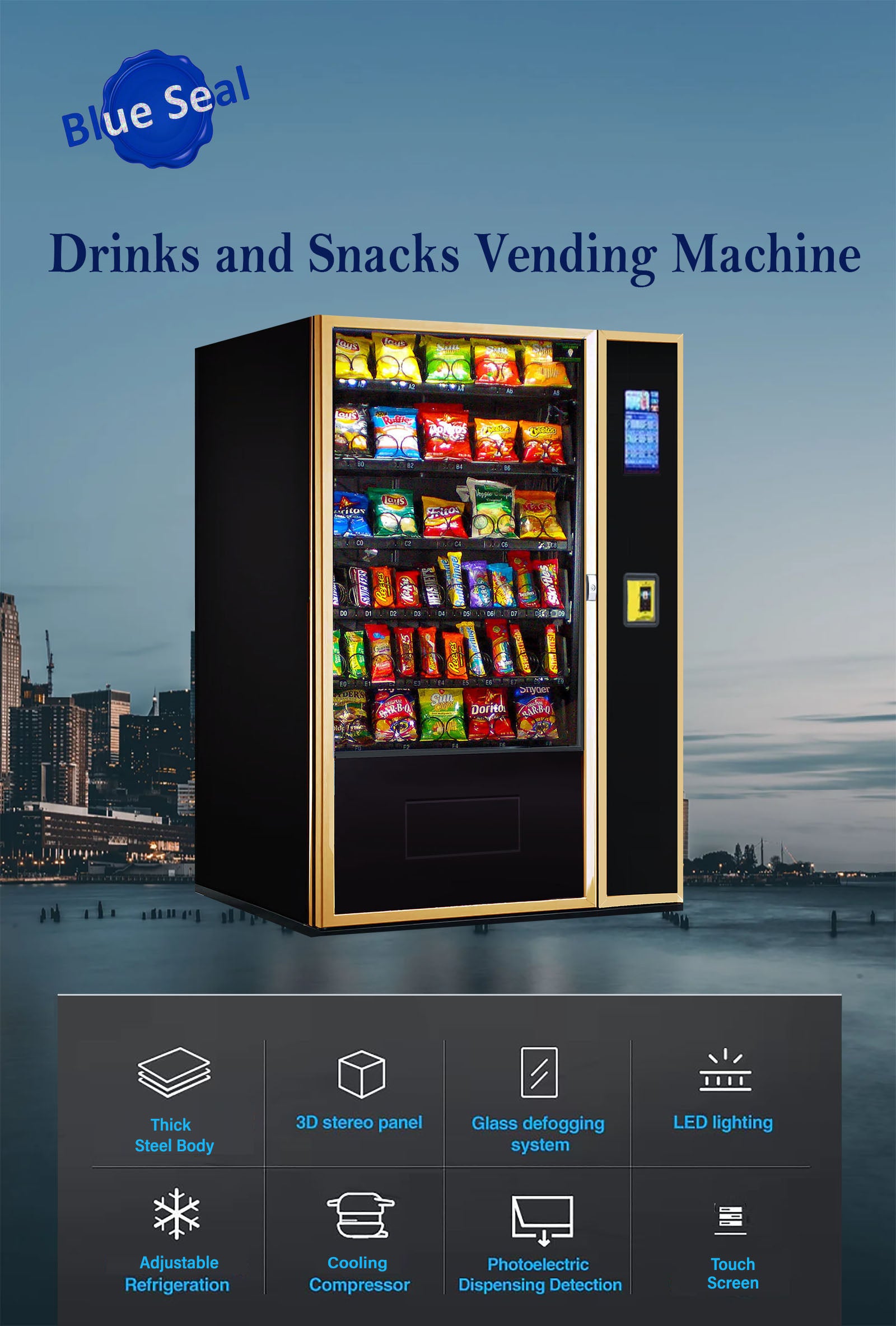 BLUE-1004C-BKTCR is a high-performance Combo vending machine with 7" inch touch-screen, this quality modern machine provides an intuitive self-service experience, ideal solution for shopping malls, gyms, schools, and high-traffic and office warehouse areas.
