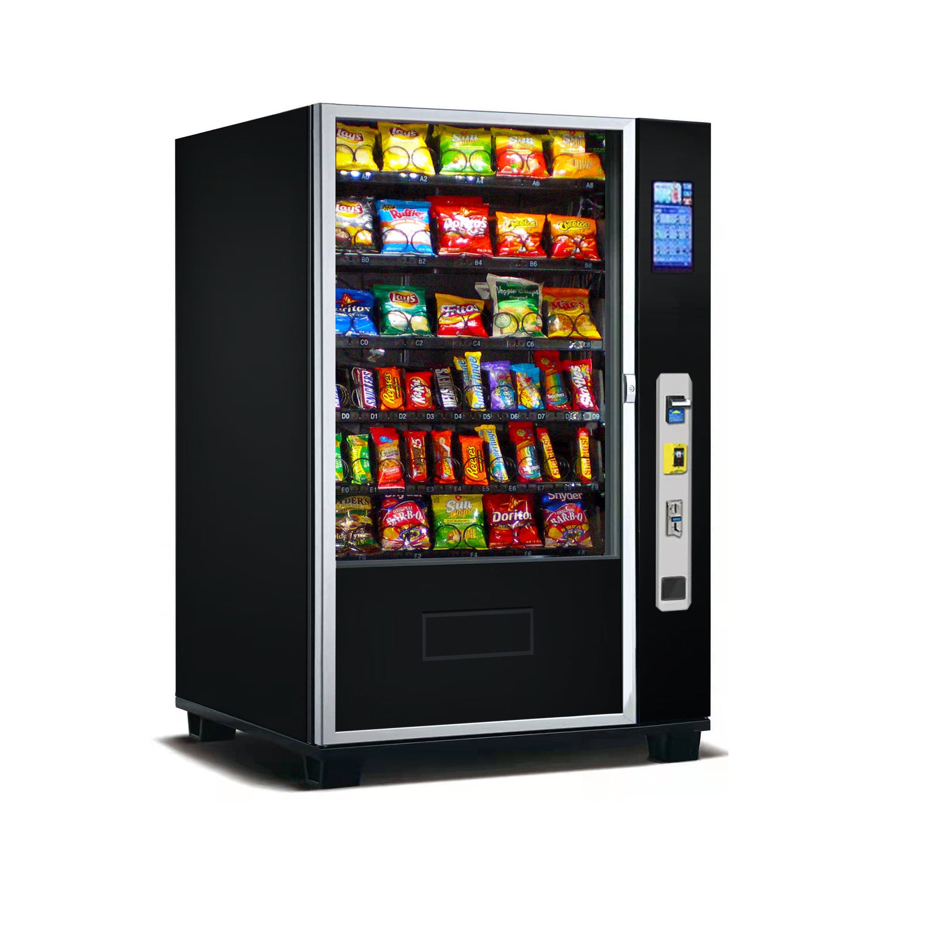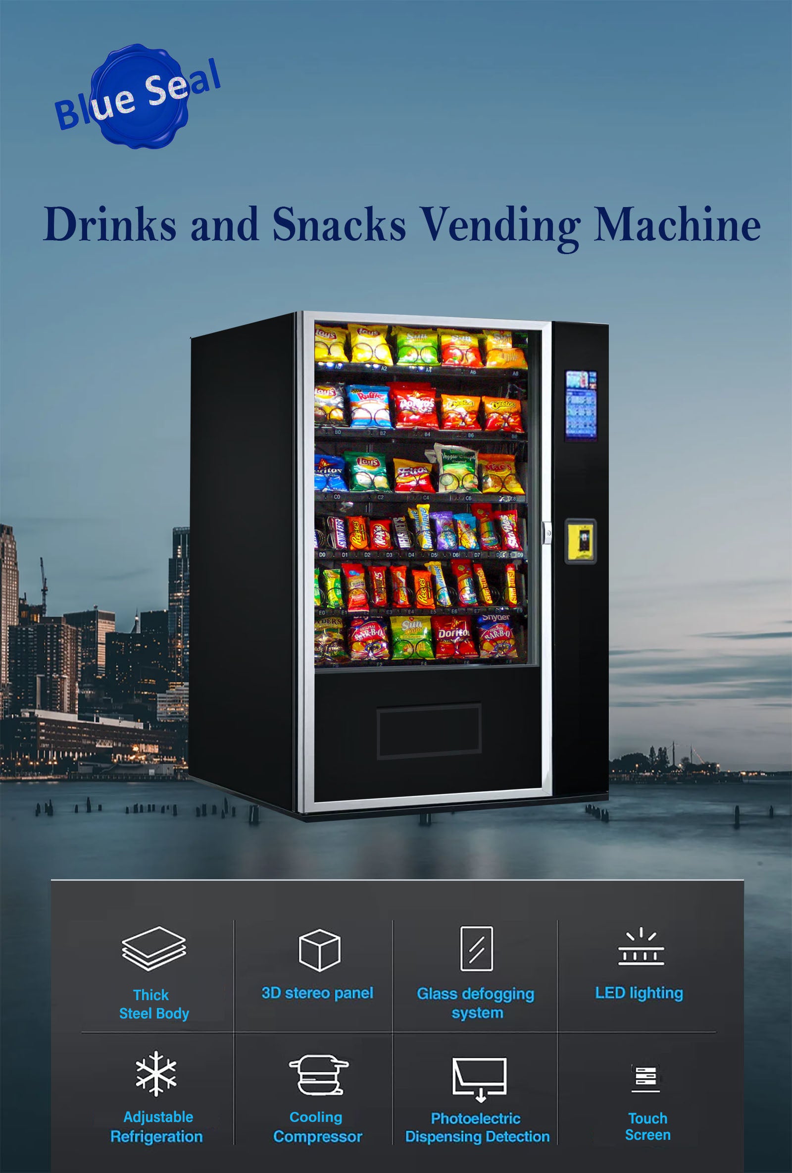 BLUE-1004C-BK-TCR is a high-performance Combo vending machine with 7" inch touch-screen, this quality modern machine provides an intuitive self-service experience, ideal solution for shopping malls, gyms, schools, and high-traffic and office warehouse areas.