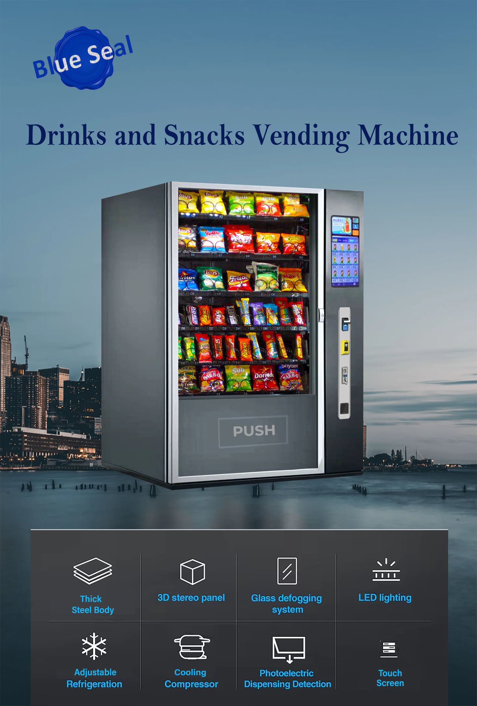 BLUE-1005S-GR-TNH is a high-performance Snacks vending machine with 21" inch touch-screen, this quality modern machine provides an intuitive self-service experience, ideal solution for shopping malls, gyms, schools, and high-traffic and office warehouse areas.
