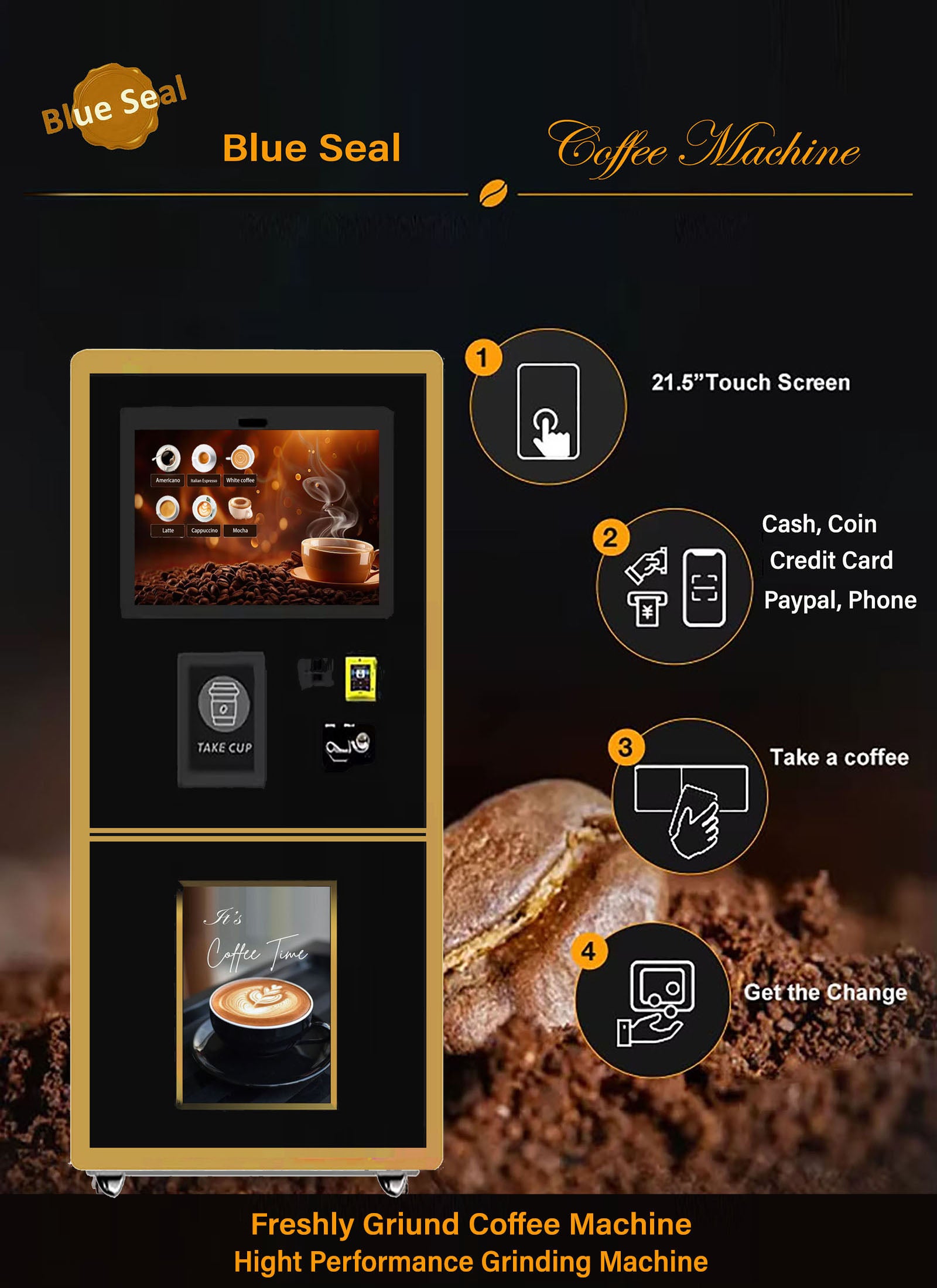 - Shelves can be adjusted base on the Match multiple like the Americano, Latte, Cappuccino, Lemonade, Juice, Milk Tea, mineral water product.